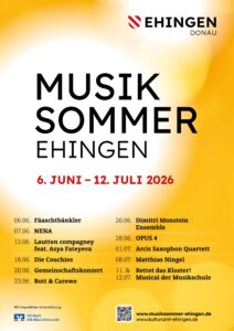 Die Donaustadt Ehingen lädt in der Zeit von Sonntag, 06. Juni bis Sonntag, 12. Juli 2026 wieder mit anspruchsvollen und interessanten Konzerten zum international besetzten Musiksommer ein.